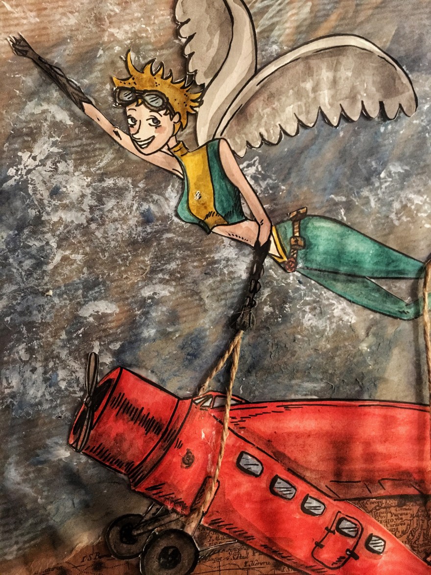 Illustration pour une exposition collective « Désublimation Régressive », « WonderZouz' », thème : choisir une femme qui nous inspire et une super héroïne, mixer le tout. Collage, peinture, techniques mixtes – 2019